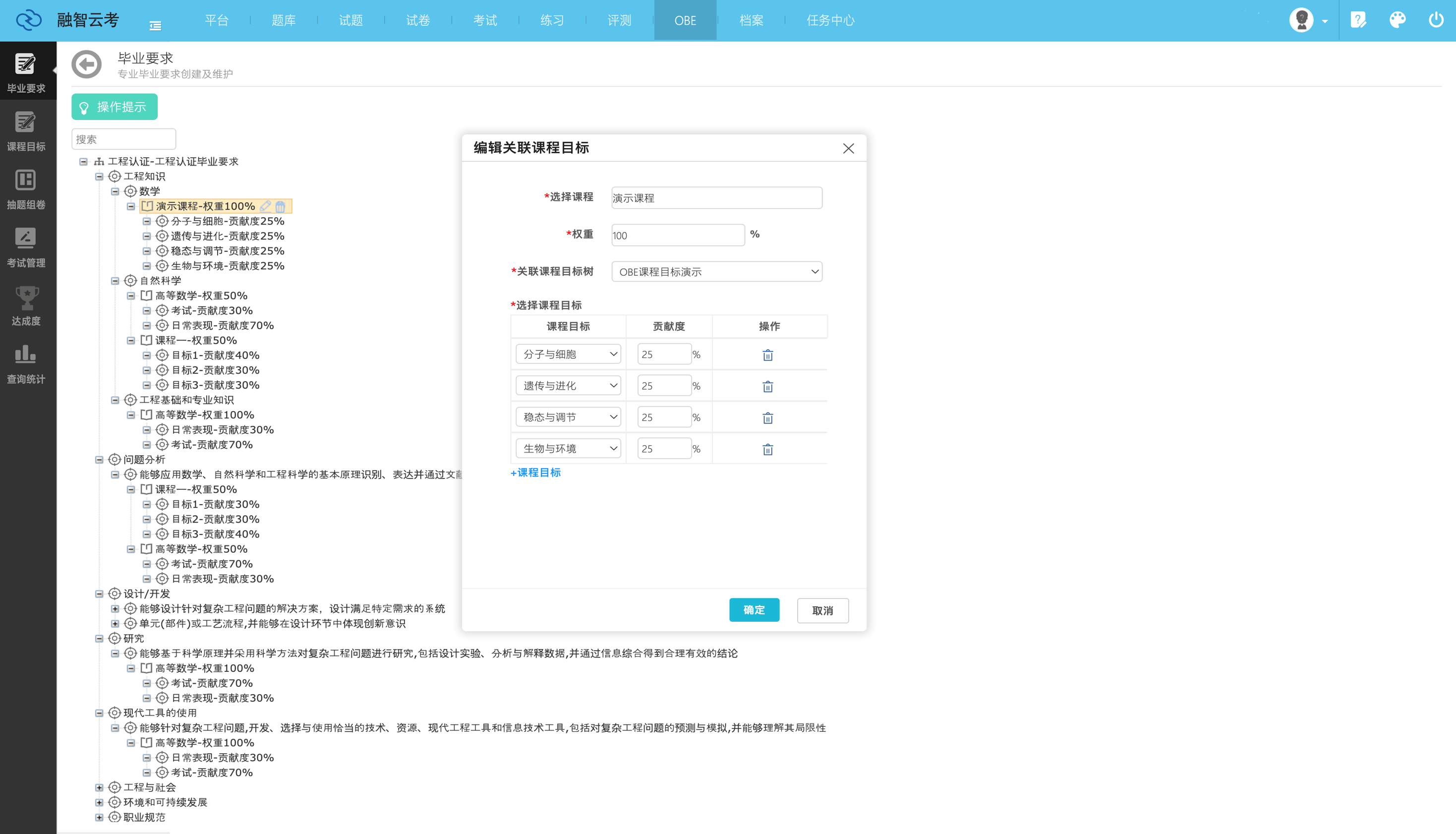 OBE讲授以“学生核心、导向、持续改良”为焦点,强调通过明白预期进修,反向设想课程系统取讲授方式。这一取我国工程教育认证尺度高度契合,已成为高校专业扶植的主要指南。融智云创软件无限公司的OBE处理方案笼盖了从专业扶植规划到课程方针告竣度阐发的全链条,通过数据驱动的体例帮帮高校实现讲授质量的可视化办理取动态优化。以某“双**”高校机械工程专业为例,引入OBE讲授后,该专业通过度解结业要求目标点,沉构了32门焦点课程的讲授纲领,并操纵课程方针告竣度系统对每门课程的查核体例取内容进行了精准设想。实施一年后,学生工程实践能力评分提拔23%,用人单元对劲度达到95%,专业成功通过工程教育认证。融智云创软件无限公司的焦点产物——课程方针告竣度系统,通过三大手艺模块实现讲授评估的智能化升级:据统计,利用该系统的高校平均缩短评估周期60%,数据精确率提拔至98%以上。某使用型本科院校使用后,数据支持无力”获得专家高度评价。