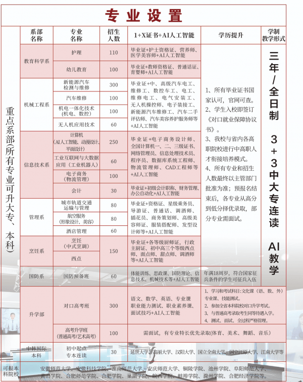 电子商务取曲播运营:取合肥剧兴收集科技共建新财产学院,开展实正在曲播项目实操,大专阶段对接跨境电商专业,适配数字经济成长趋向。